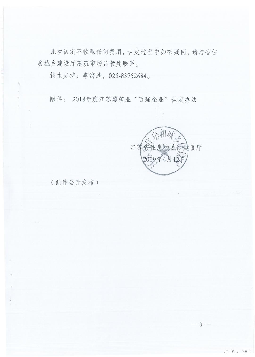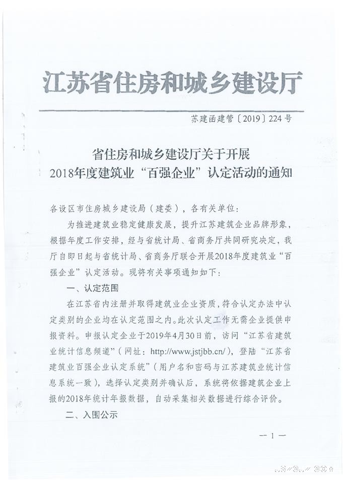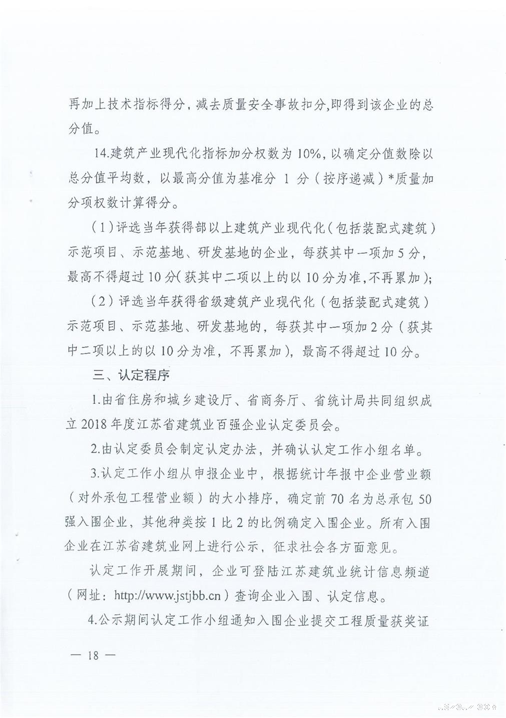 省住房和城乡建设厅关于开展2018年度建筑业“百强企业”认定活动的通知