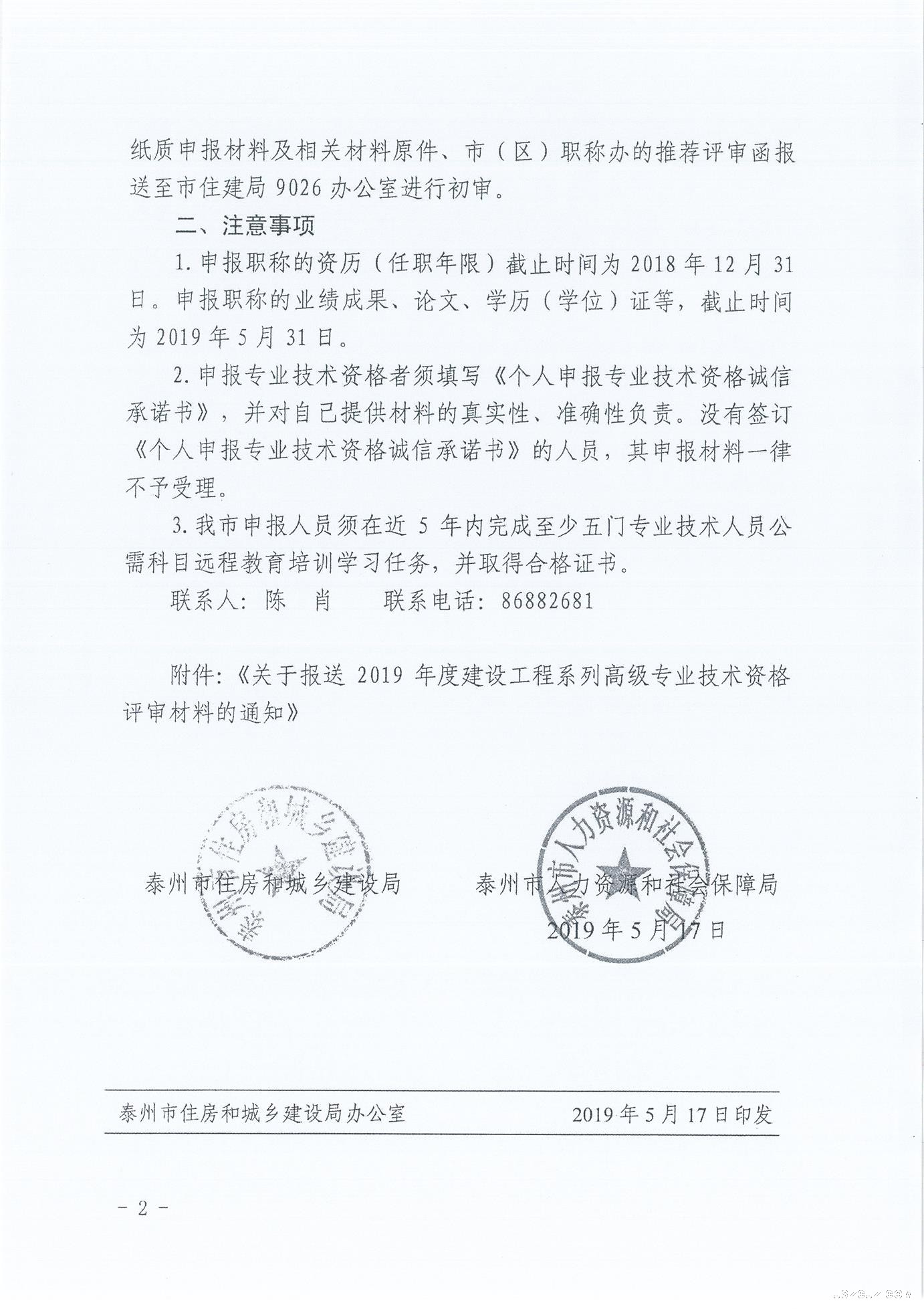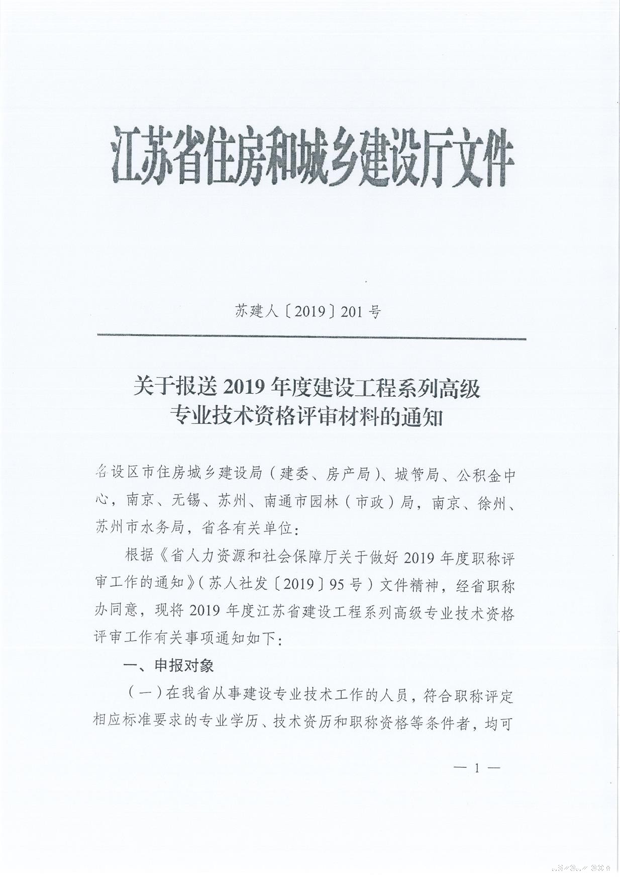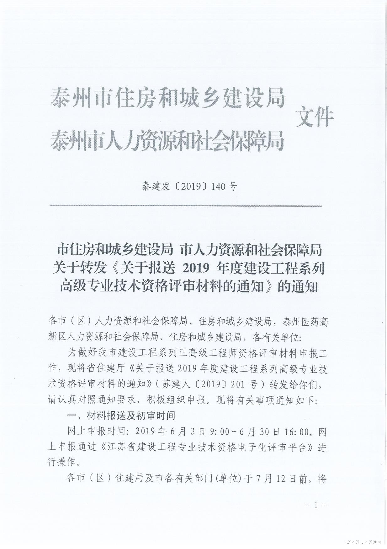 关于转发泰州市住建局《关于报送2019年度建设工程正高级专业技术资格评审材料的通知》的通知