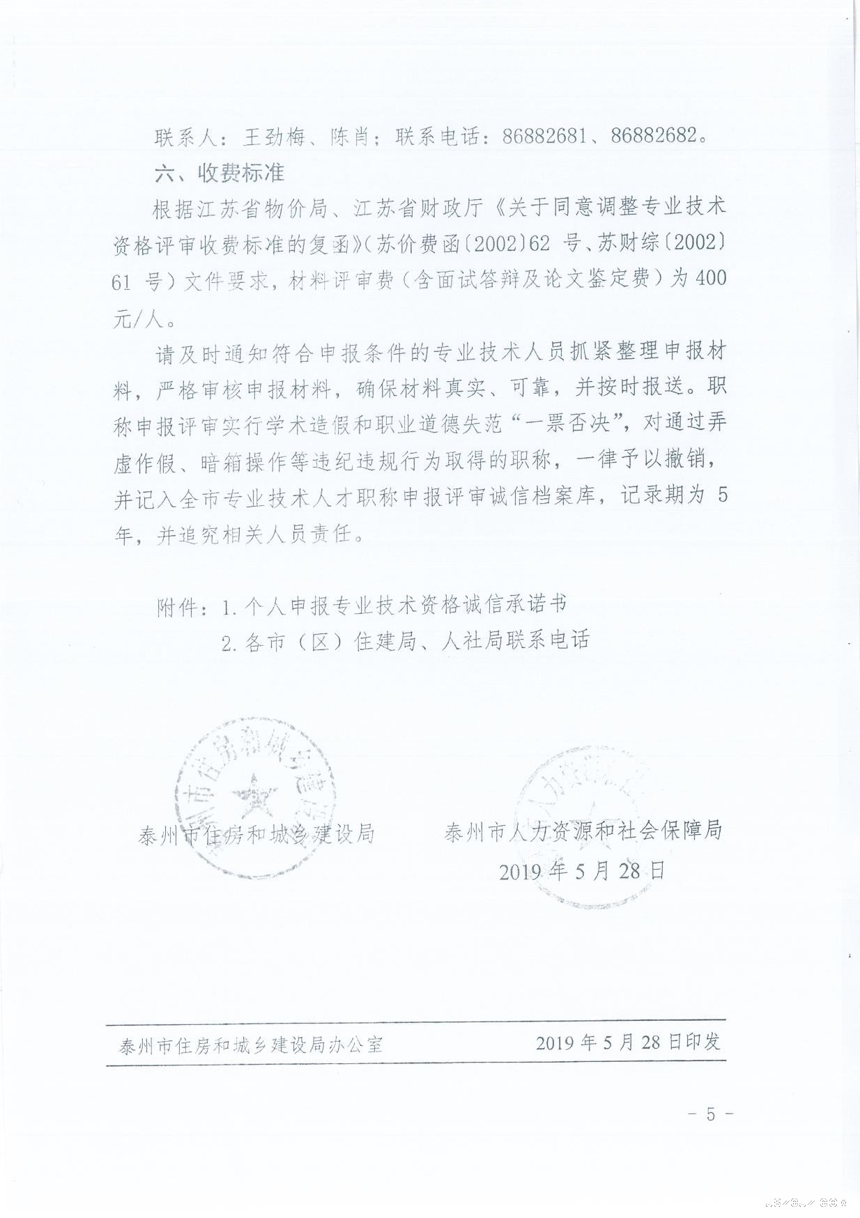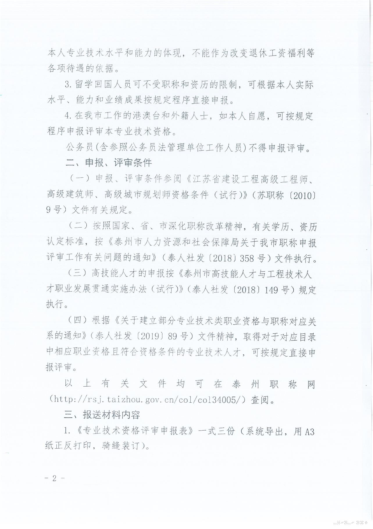 市住房和城乡建设局 市人才资源和社会保障局关于报送2019年度泰州市建设工程系列高级专业技术资格(副高)评审材料的通知