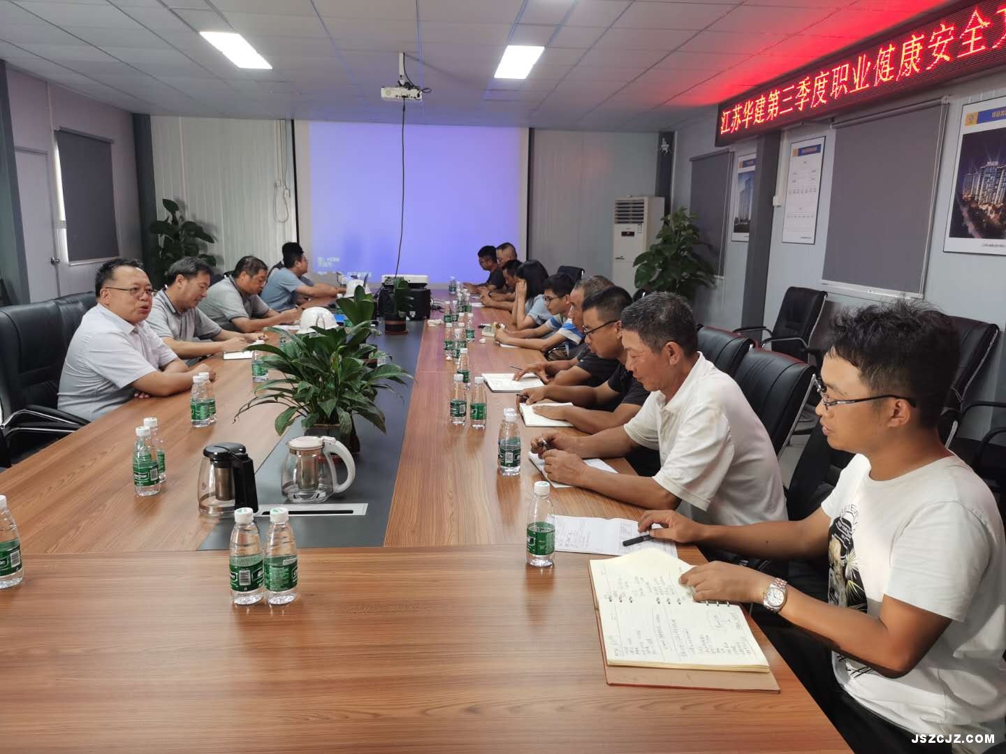 911日至17,我司深圳分公司(华建深圳七处)六个在建项目全部接受了华建深圳分公司三季度职业健康安全文明施工检查,公司董事长、总经理、深圳分公司经理吴桂松全程参与、陪同检查。在最后一站东莞虎门宜展项目检查结束后,吴董事长与项目全体管理人员见面,并亲切座谈。