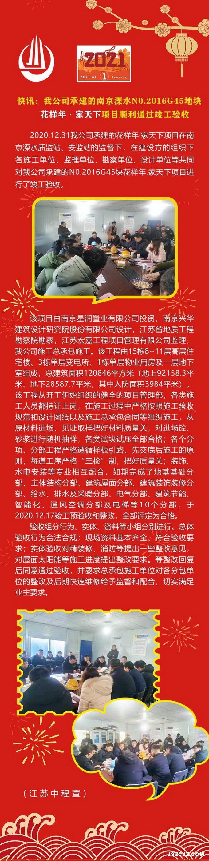快讯:我公司承建的南京溧水N0.2016G45地块花样年·家天下项目顺利通过竣工验收