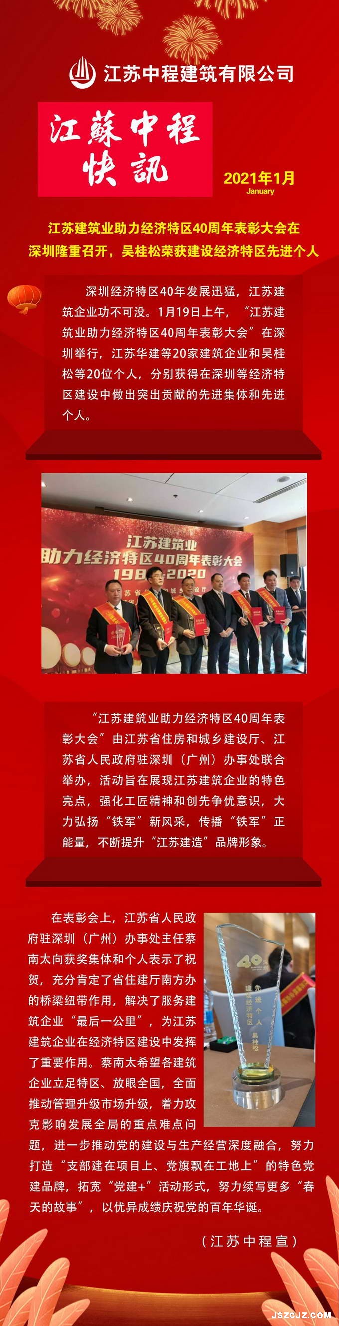 快讯:江苏建筑业助力经济特区40周年表彰大会在深圳隆重召开,吴桂松荣获建设经济特区先进个人
