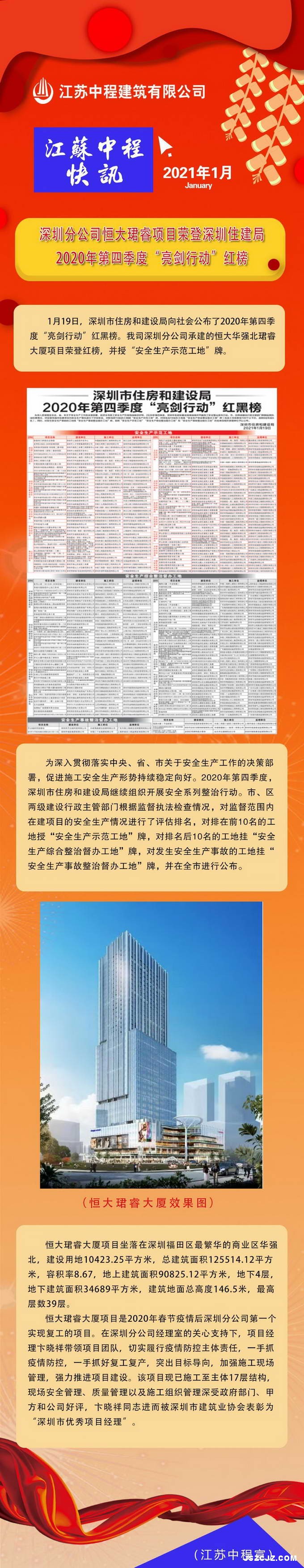 快讯:深圳分公司恒大珺睿项目荣登深圳住建局2020年第四季度“亮剑行动”红榜