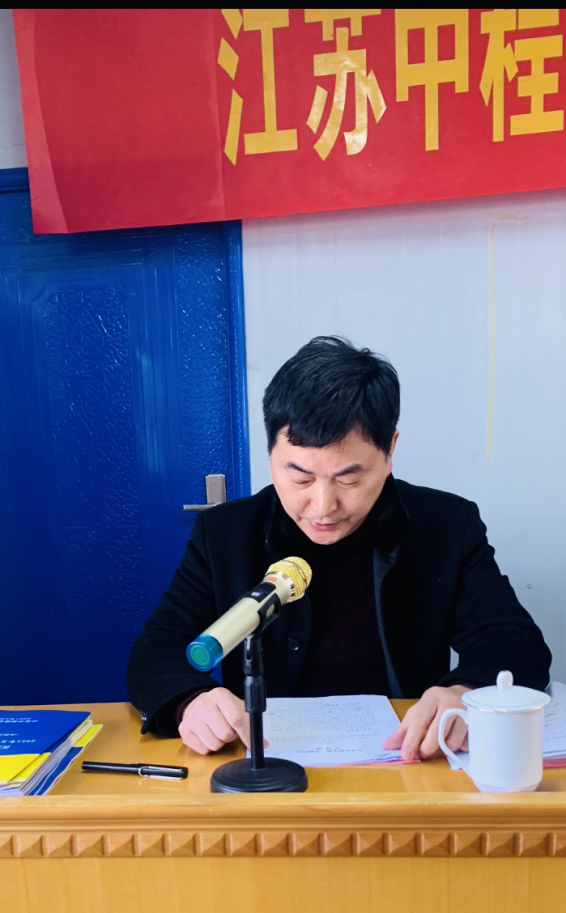 2021219日,江苏中程五届三次职代会在公司总部一楼大会议室隆重召开,公司党委书记、董事长、总经理吴桂松以及公司董事会成员纪金文、钱承荣、万云锦、杨军等领导在主席台就座,公司党委副书记、工会主席于筛云主持会议,出席此次职代会的职工代表37人,应邀列席会议16人。