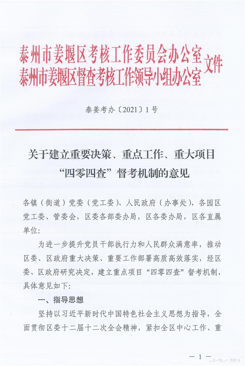 关于建立重要决策、重点工作、重大项目“四零四查”督考机制的意见