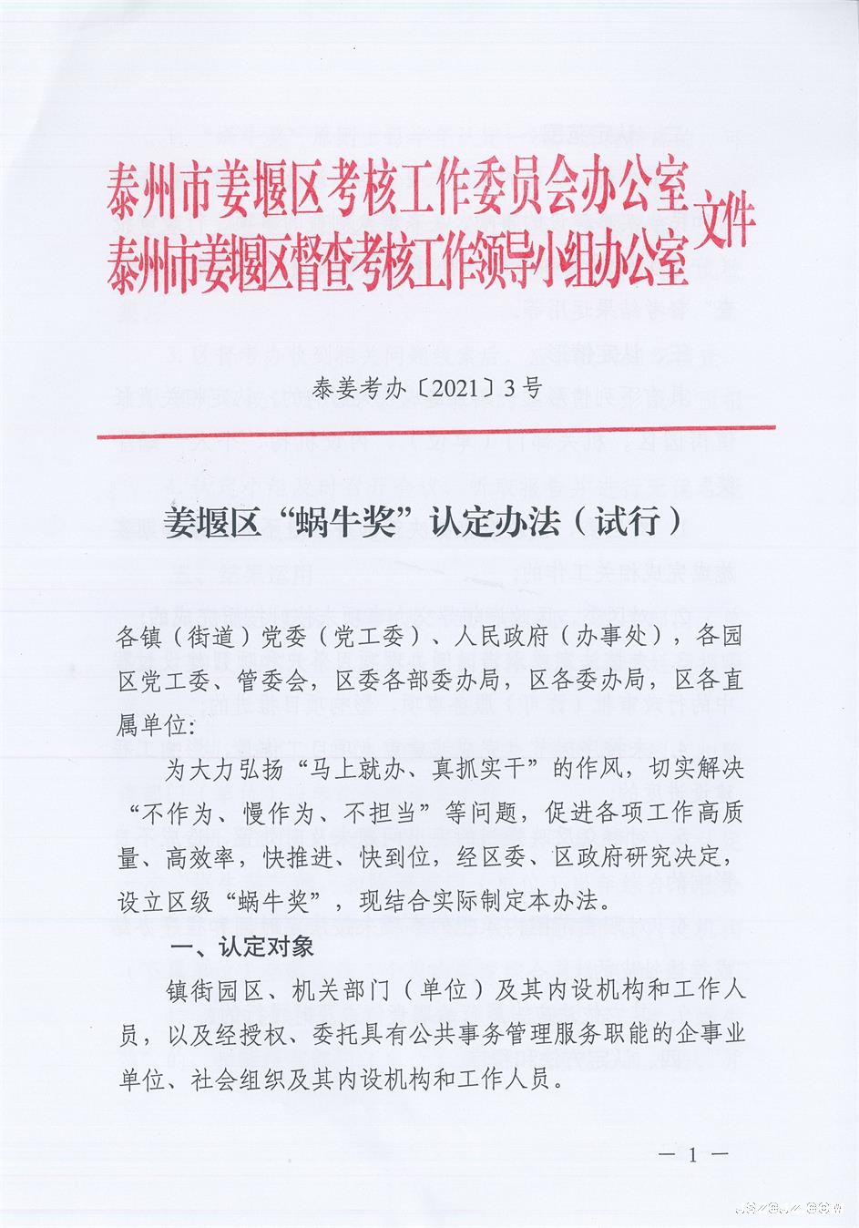 姜堰区“蜗牛奖”认定办法(试行)