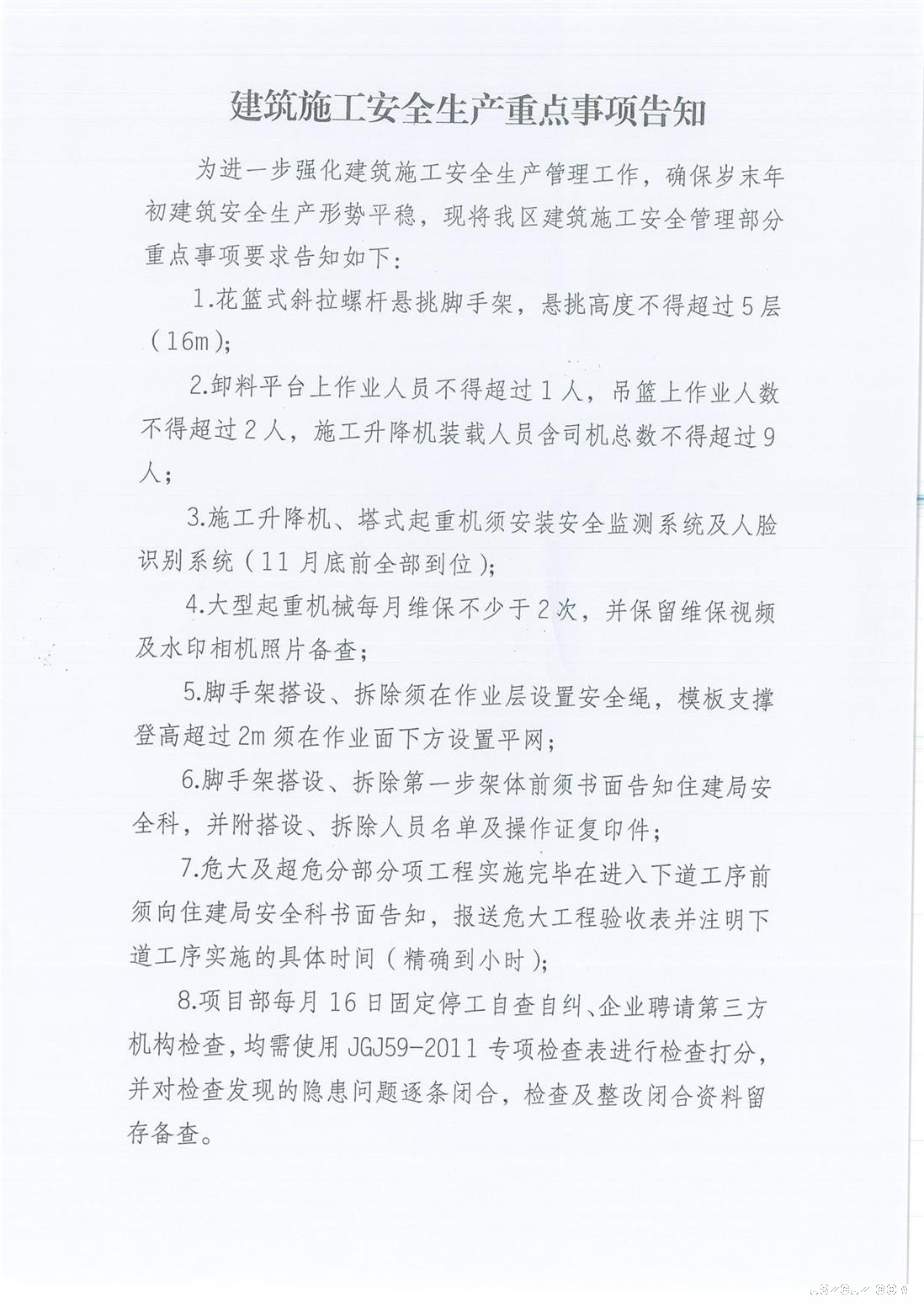 建筑施工安全生产重点事项告知