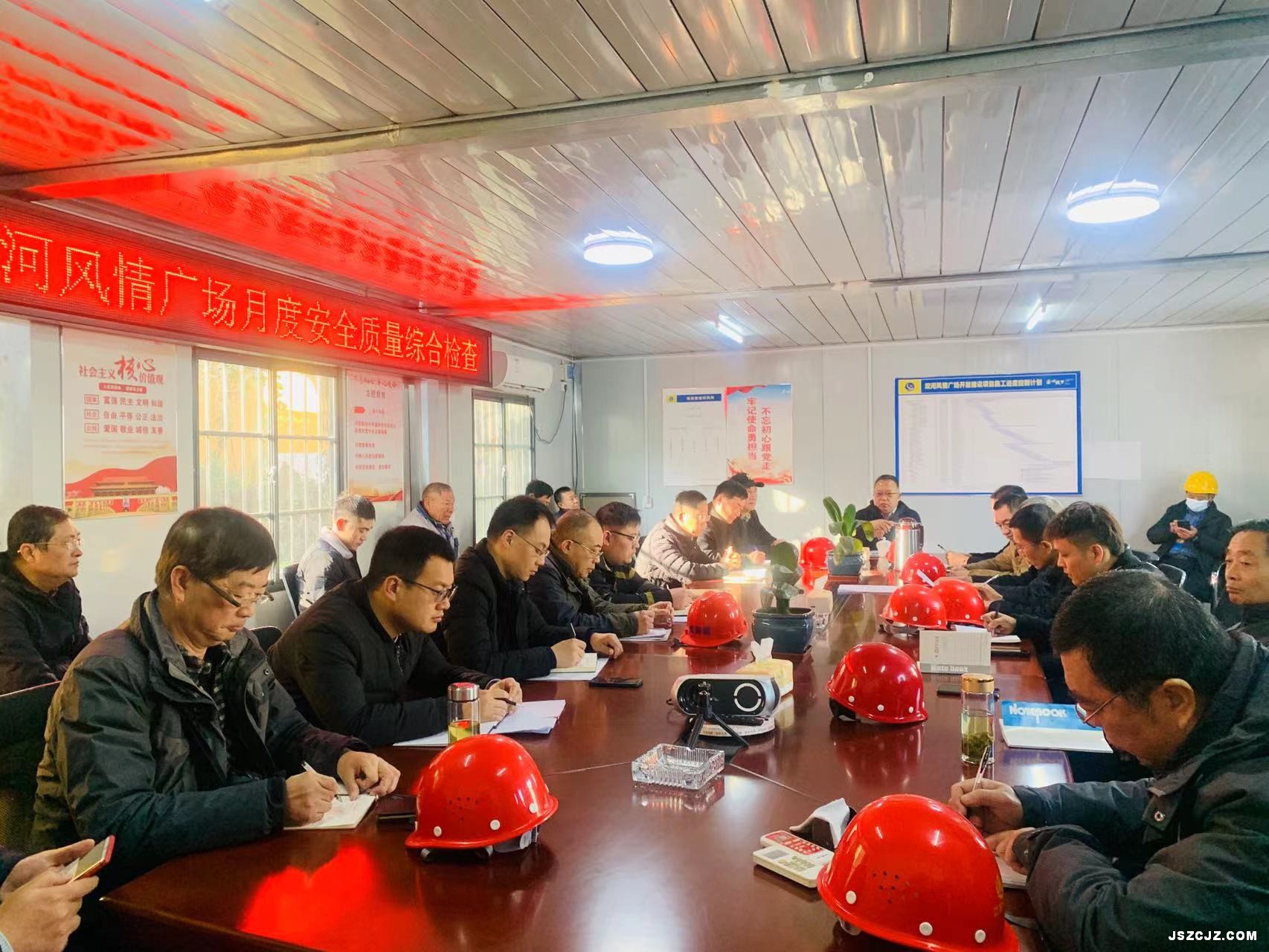 1124日上午,公司利用半天时间对双河风情广场项目开展突击性综合大检查,此次检查吴桂松董事长十分重视,要求对双河风情园土建项目、以中程品牌承建的风情园幕墙项目、风情园安装项目进行拦网式检查,检查公司三级管理制度落实情况、项目进度及履约情况,全面评估项目安全状况。在姜的公司领导、总部各部室负责人、各分公司负责人及相关科室负责人参加检查活动。