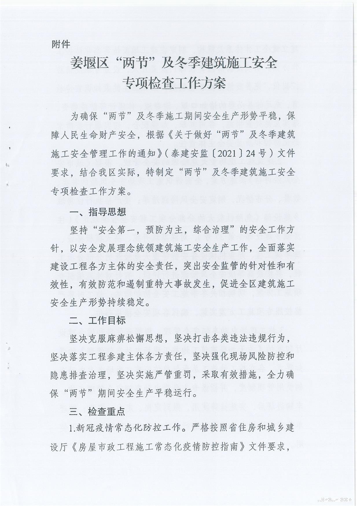关于印发《姜堰区建筑施工领域安全生产