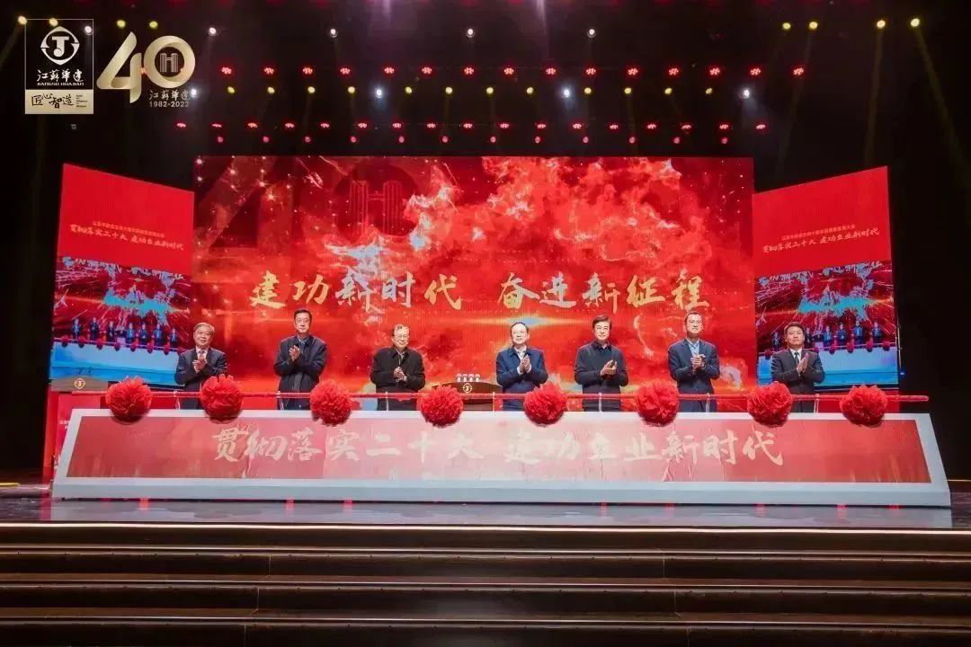会上,与会嘉宾共同观看了江苏华建成立四十周年专题片;奋战在各条战线的华建人从祖国各地向大会发来祝福短片;江苏华建党委书记、董事长王宏首先作了题为《风华正茂四十载,砥砺奋进向未来》主旨讲话;扬州市委常委、秘书长、副市长赵庆红,江苏省建筑行业协会会长张宁宁,江苏省政府驻深单位党委书记蔡南太,江苏省住建厅二级巡视员陈晨等领导参加大会并分别致辞,未能亲赴现场的中国建筑业协会副会长吴慧娟和中国施工企业管理协会曹玉书向大会发来祝贺视频、贺信;江苏华建董事长王宏、总经理吴碧桥与缪昌文、郭正兴、叶柏森、赵正嘉、宋志清等院士专家上台推杆,共同开启江苏华建美好新征程。