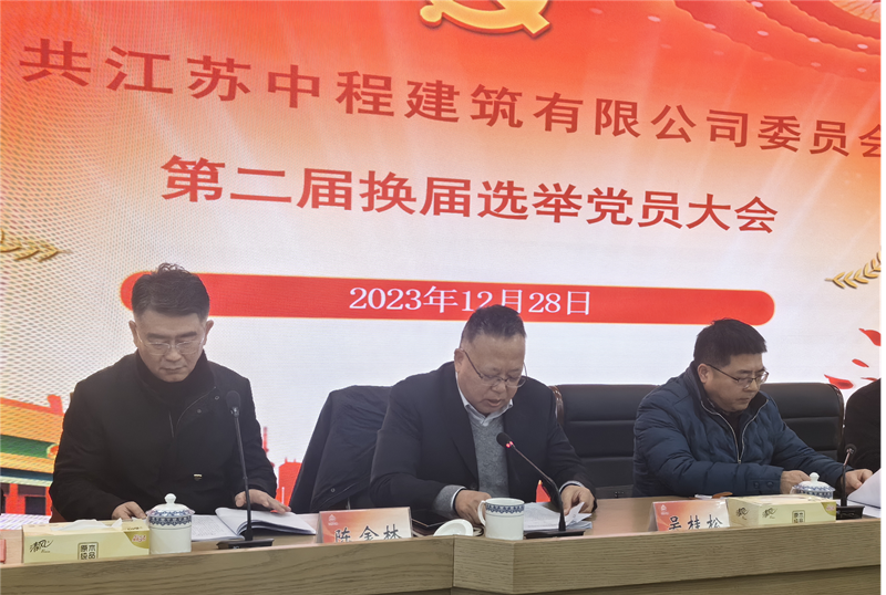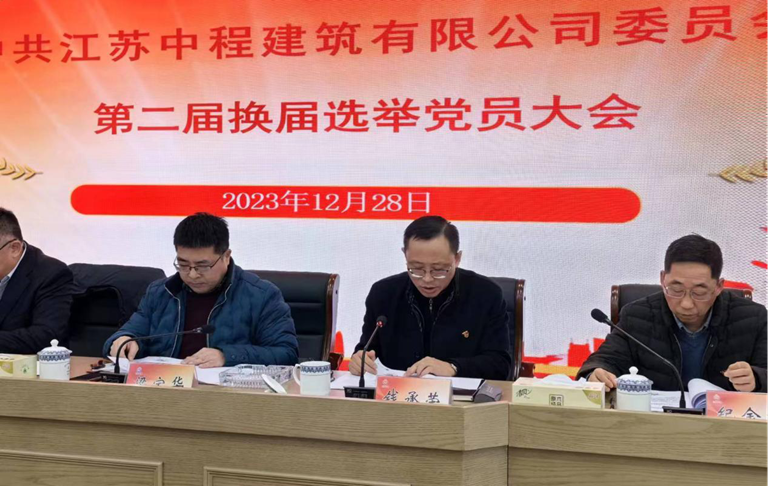 征途漫漫,砥砺奋进。2023年12月28日下午,中共江苏中程建筑有限公司委员会第二届换届选举党员大会在公司办公楼报告厅召开。区住建局机关党委委员梁宝华科长出席会议,公司非党员经理室成员列席会议,在姜各支部全体党员参加会议,大会由第一届党委书记吴桂松主持。