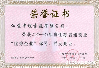 5月6日江苏省建筑行业协会2011年会员代表大会上,我公司被表彰为2010年度江苏省建筑行业优秀企业。
