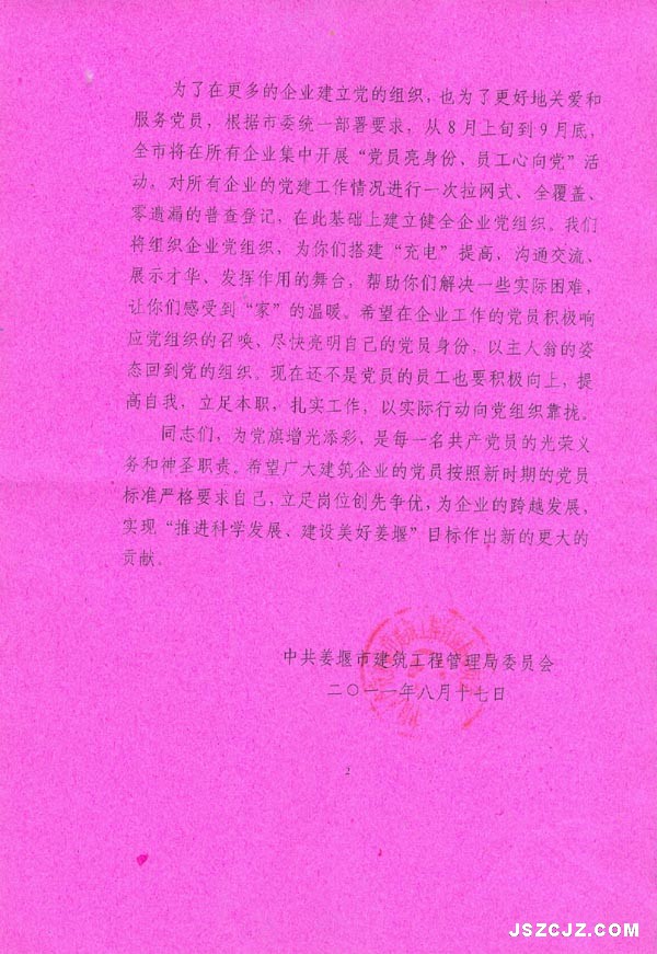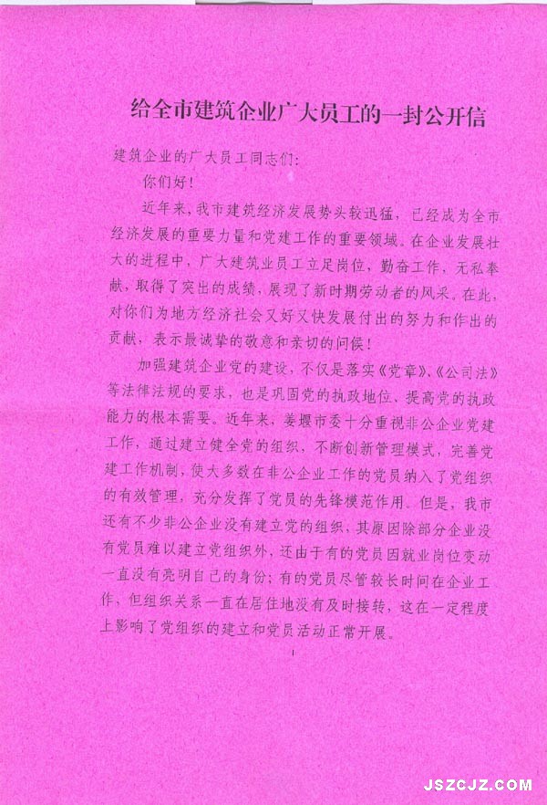 转发姜堰市建筑管局“给全市建筑企业广大员工的一封公开信”