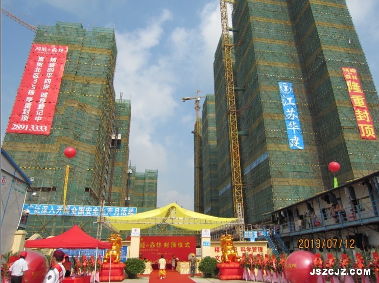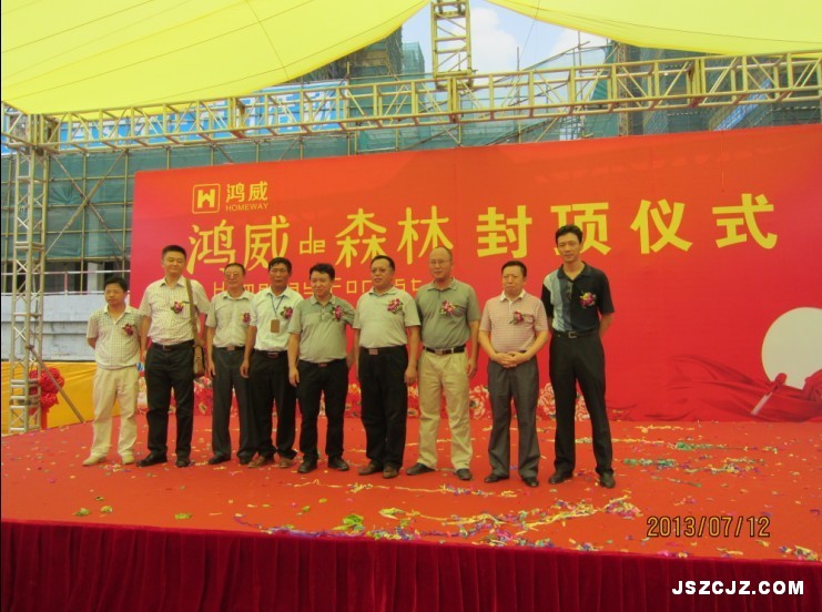 712上午深圳分公司承建的鸿景华庭商住楼一期主体工程举行了隆重的封顶仪式。公司副董事长、总经理吴桂松参加剪彩仪式并发表了热情洋溢的讲话。鸿景华庭商住楼项目一期总面积15.5万㎡,由5栋高层和16栋联排别墅、13层幼儿园组成,分南北两区,自20125月开工以来,我司精心组织,项目部全体员工全力以赴,克服重重困难,高质量、高速度的完成了主体结构的施工。