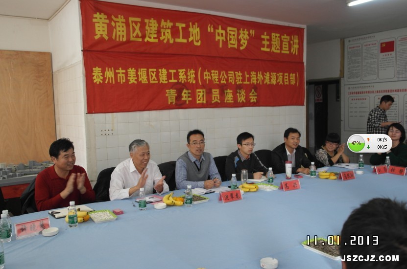 2013年11月1日,姜堰区团委、建工局团委在建工局沈翠龙副局长的带领下来到上海分公司外滩源项目部,召开青年团员座谈会。这充分体现了区、局团委及各级领导对我们战斗在施工一线的全体青年团员和干部员工政治、精神生活的重视、关心和厚爱。上海分公司党支部书记陈太喜同志代表分公司致欢迎词,并向与会的各位领导和兄弟单位的领导、代表介绍了外滩源项目的进展情况及我司对青年团员的培养情况,得到了与会领导的一致肯定。