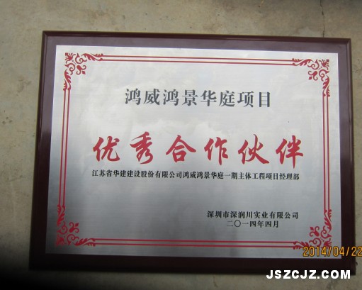 快讯:深圳鸿威鸿景华庭一期主体工程被深圳市深润川实业有限公司评选为优秀合作伙伴项目