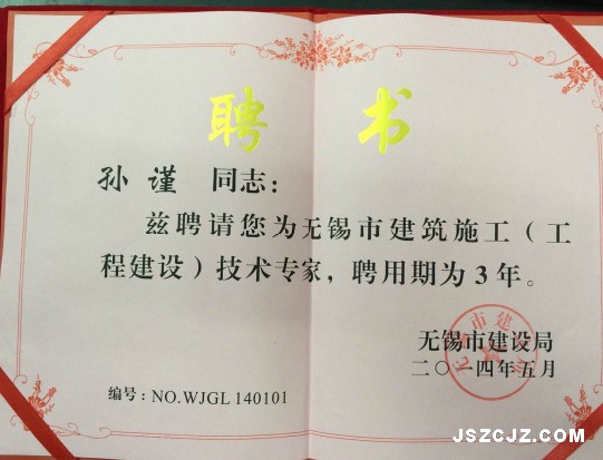 日前,无锡分公司传来好消息,我公司总经理助理、无锡分公司经理孙谨同志,于5月份被无锡市建设局聘请为建筑施工(工程建设)技术专家,这也是无锡分公司获得的一项殊荣。此次聘用仅有两家进锡施工企业入选。