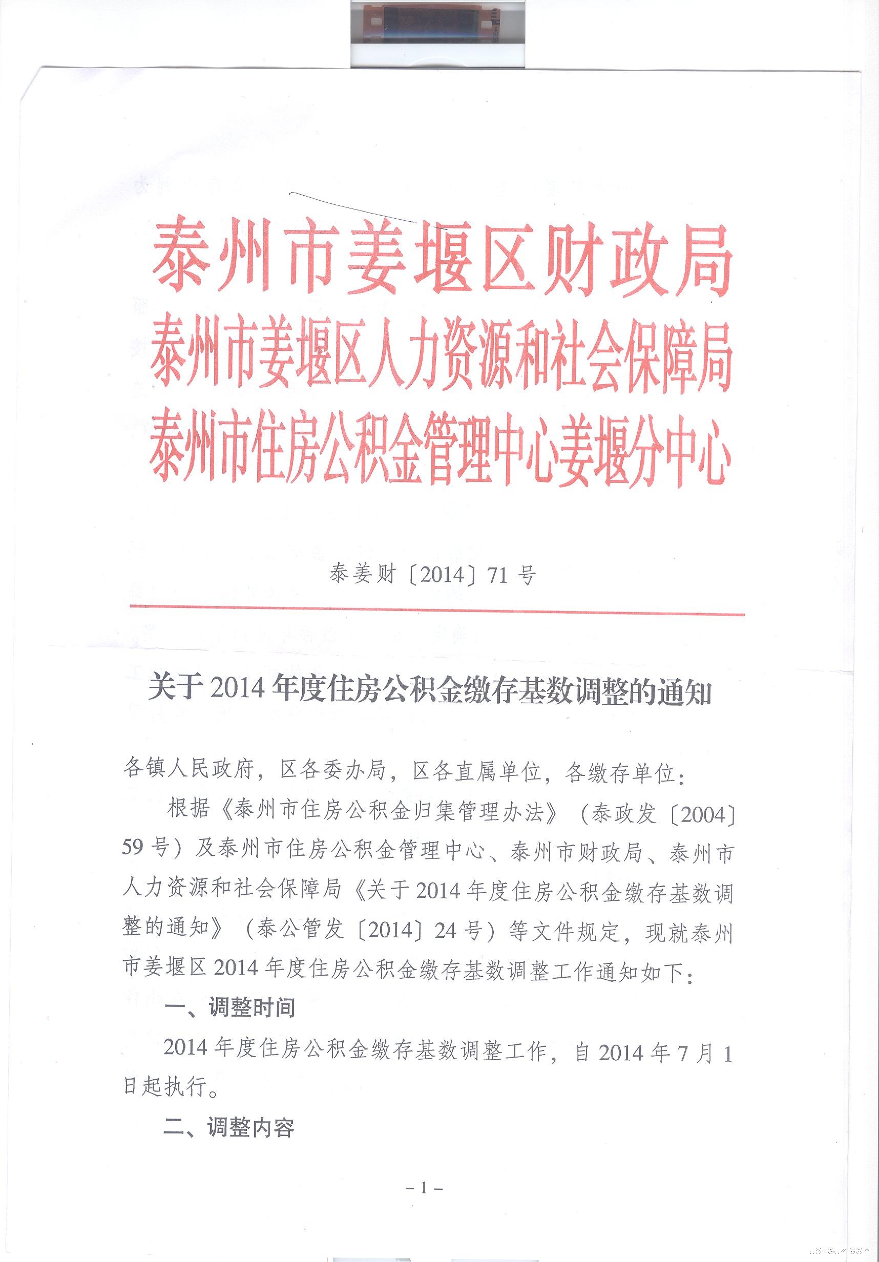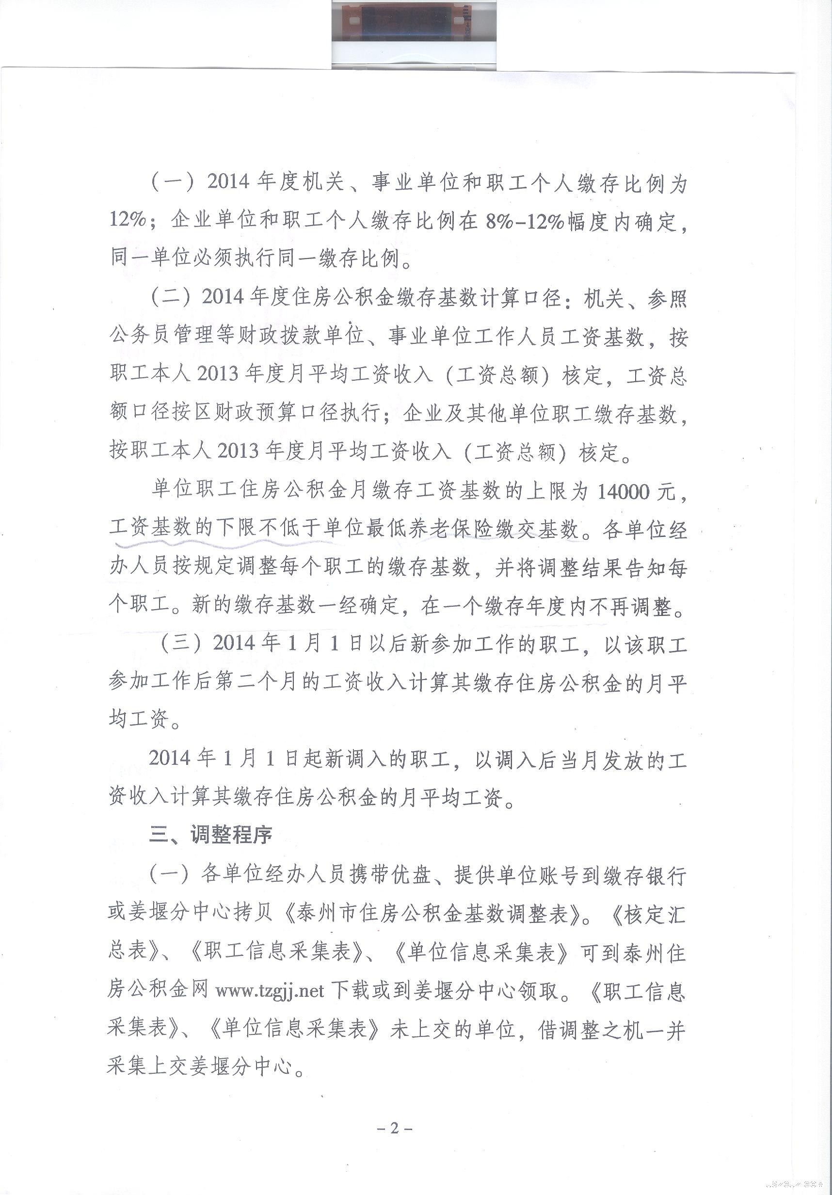关于2014年度住房公积金缴存基数调整的通知