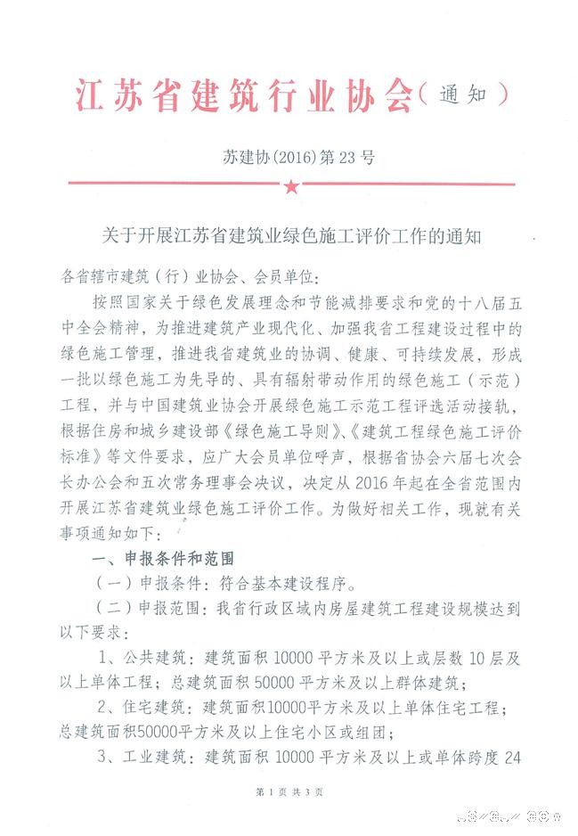关于开展江苏省建筑业绿色施工评价工作的通知