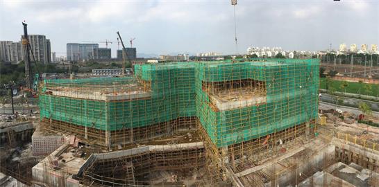 该项目为我公司首次进驻杭州的初始项目,总建筑面积14.15万平方米 ,共14栋,此次封顶的14号楼售楼处为地下2层,地上3层,建筑面积4490.54平方米