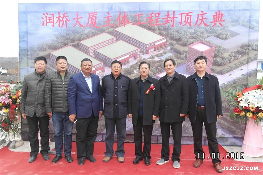 由我公司总承包施工的南京润桥大厦主体结构工程于11月28日午时顺利封顶,江苏大唐存储科技有限公司董事长余庭虎、我公司董事长杭中和等相关领导出席封顶仪式。