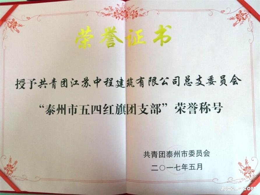 简讯:我公司团总支被授予“泰州市五四红旗团支部”荣誉称号