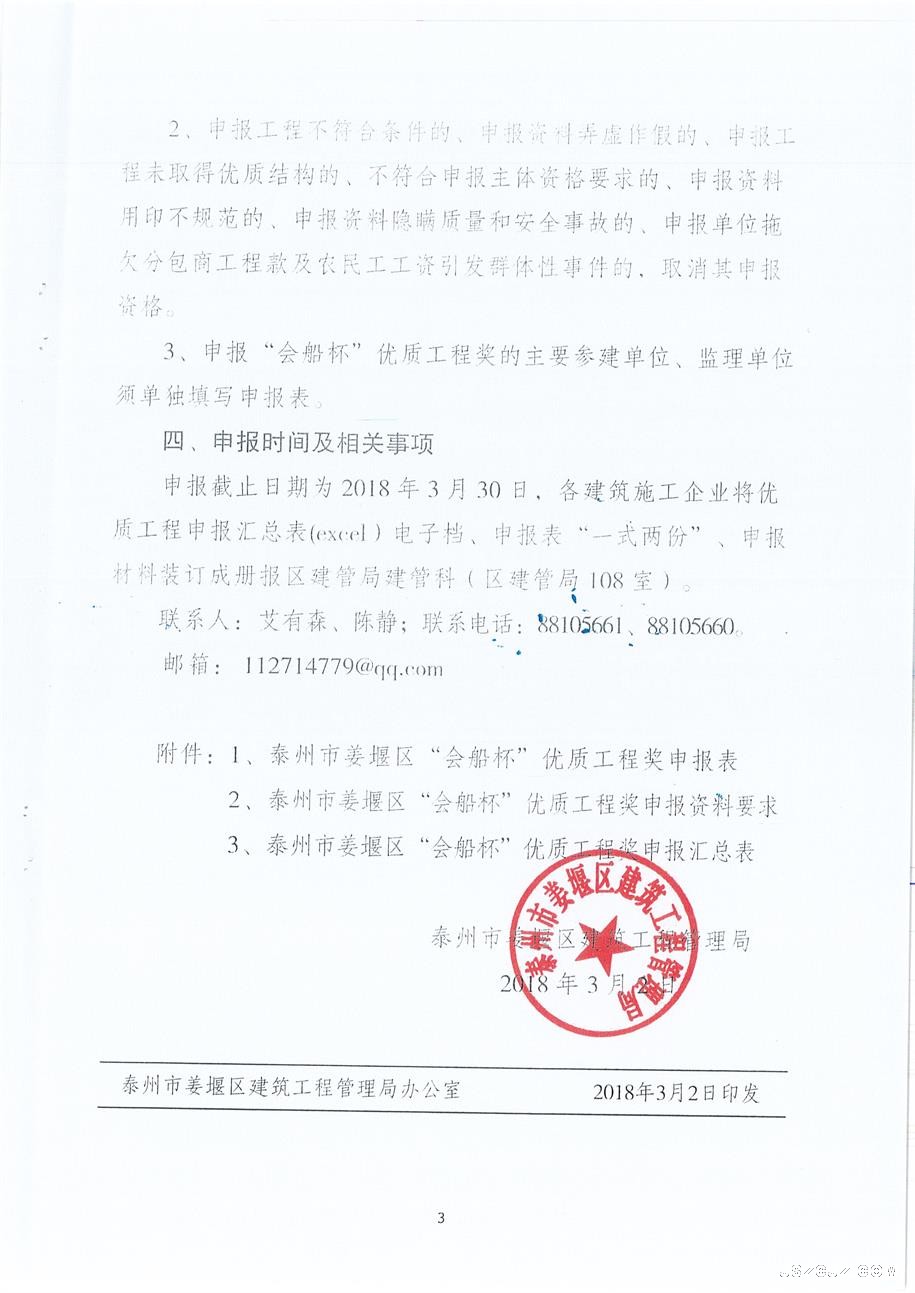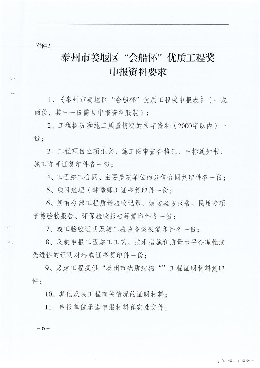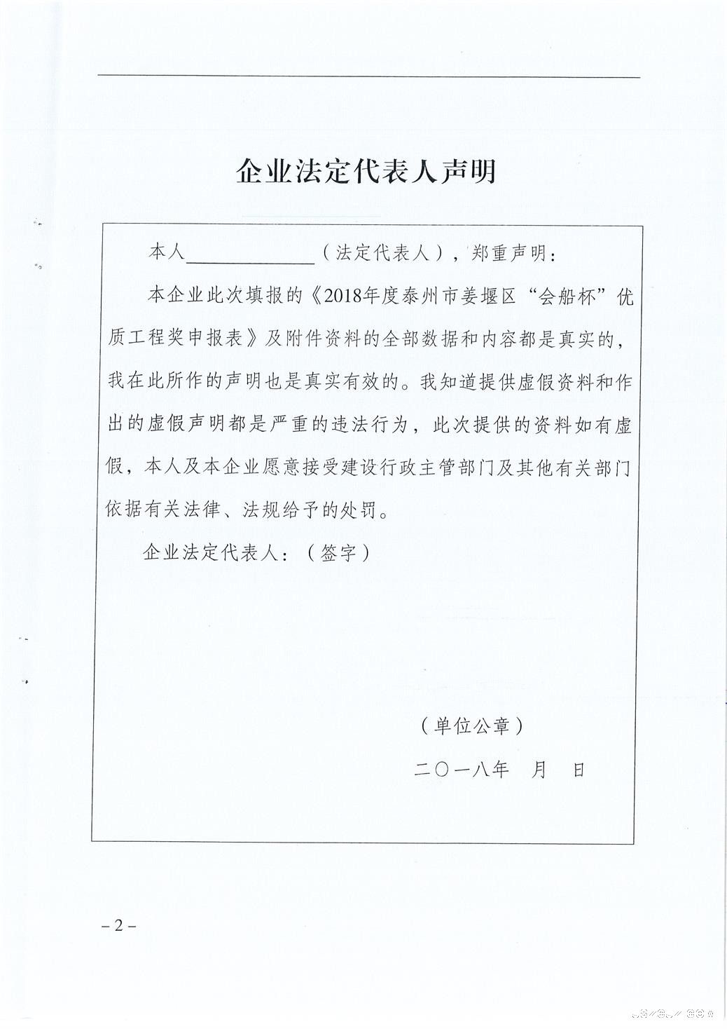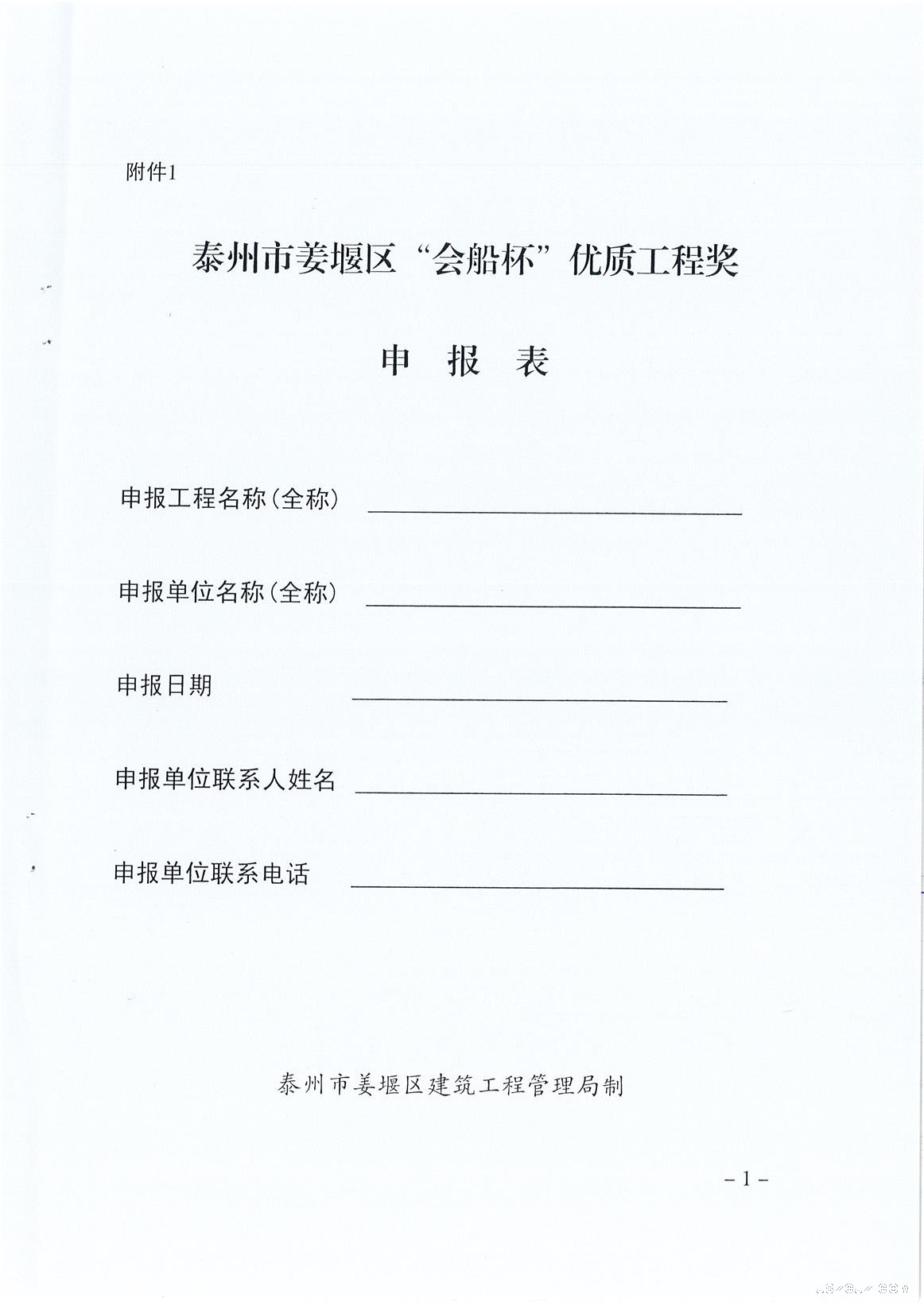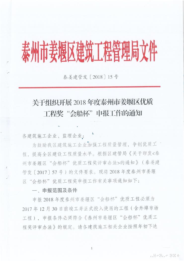 关于组织开展2018年度泰州市姜堰区优质工程奖“会船杯”申报工作的通知