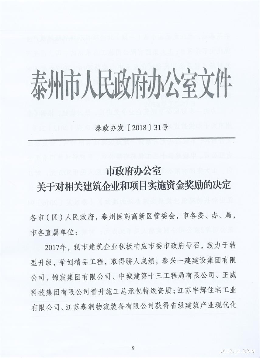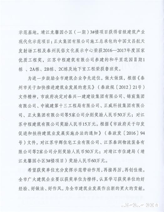 市政府办公室关于对相关建筑企业和项目实施资金奖励的决定