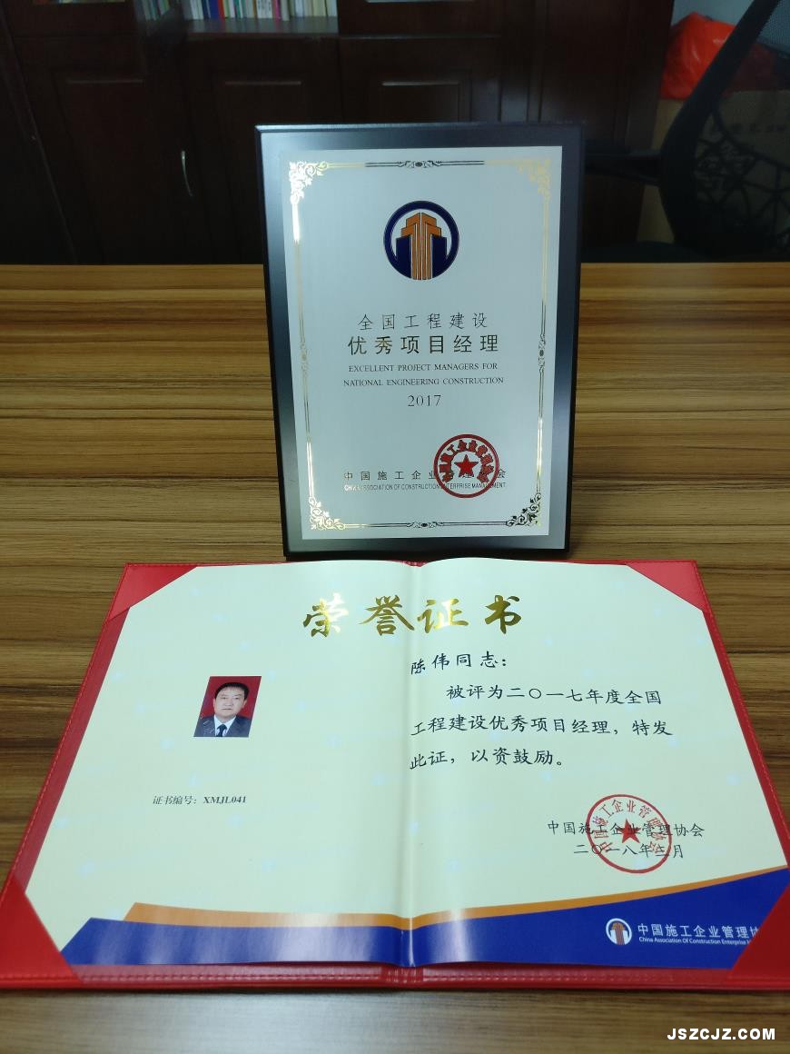 此前,陈伟同志还被江苏省住建厅通报表扬为“2017年度江苏出省施工先进个人”。陈伟同志获得的荣誉也标志着我公司在江苏省建筑产业化行业已占领排头兵位置,在行业中起到了良好的典范和引领推动作用。